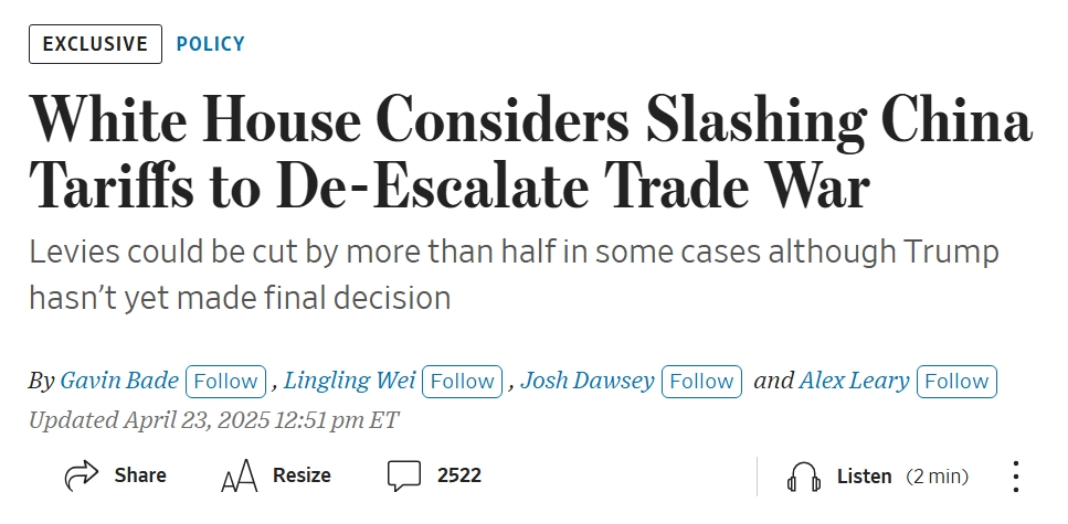 據(jù)《華爾街日報(bào)》報(bào)道,美方可能會(huì)將中國進(jìn)口商品的關(guān)稅降至50-65%之間,以緩解貿(mào)易緊張局勢。