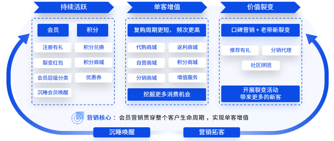 同時,系統(tǒng)支持完善的會員積分體系和會員分級管理。通過注冊有禮、消費積分、積分兌換、積分商城等玩法,持續(xù)激勵會員消費,顯著縮短他們的復購周期,提高消費頻次,真正實現(xiàn)單客價值的持續(xù)增長。