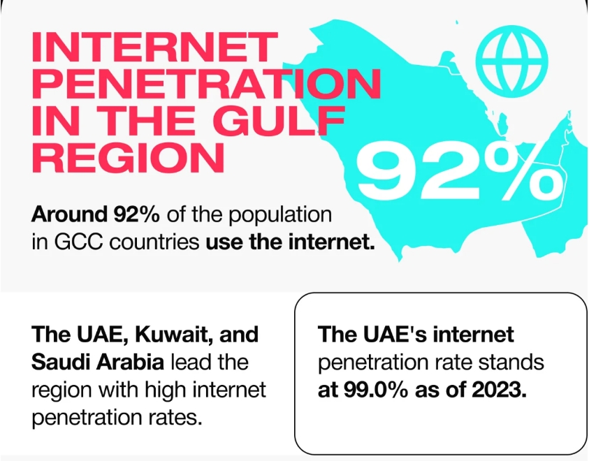 沙特阿拉伯長(zhǎng)期以來一直是全球社交媒體和數(shù)字廣告市場(chǎng)的重要組成部分。據(jù)Go-Globe調(diào)查,海灣地區(qū)的互聯(lián)網(wǎng)滲透率約達(dá)到92%,而沙特作為海灣地區(qū)最大的國(guó)家,互聯(lián)網(wǎng)普及率在該地區(qū)位居前列。
