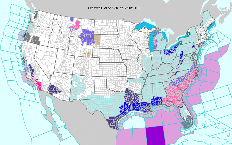 根據(jù)美國氣象局預(yù)測,預(yù)計(jì)10號州際公路走廊沿線和北部將出現(xiàn)大雪。除1-10外,許多高速公路都可能長期關(guān)閉,橫跨路易斯安那州北部和密西西比州的20號州際公路以南地區(qū)可能因?yàn)榇笱┍蛔钄?;喬治亞州東南部也可能出現(xiàn)嚴(yán)重冰暴,包括75號、95號州際公路的部分路段。