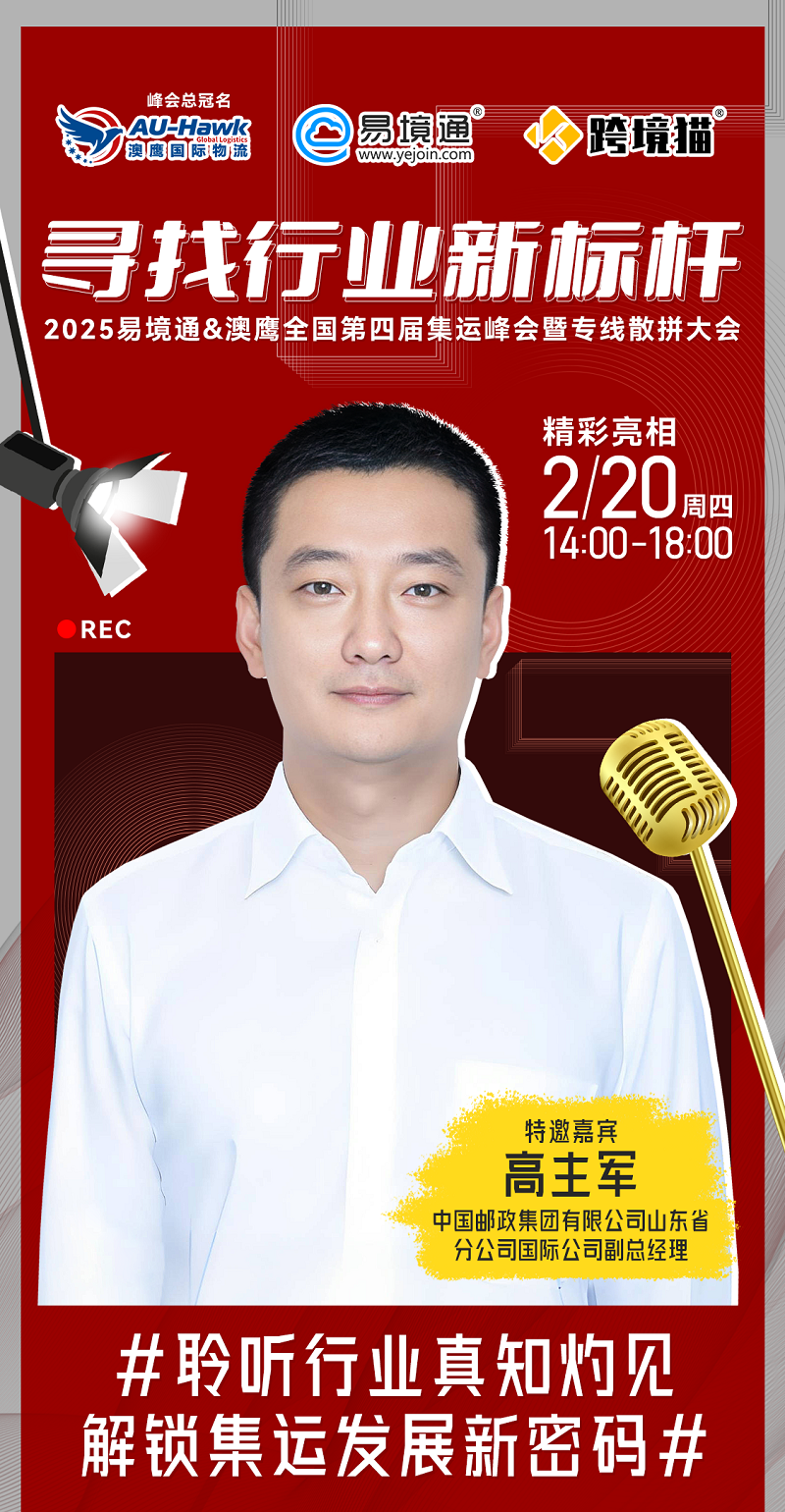 易境通集運峰會倒計時!中國郵政山東分公司高主軍副總經(jīng)理將出席!