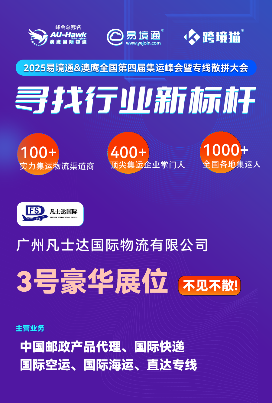 2025易境通&澳鷹第四屆集運(yùn)峰會(huì),凡士達(dá)展位等你來(lái)!