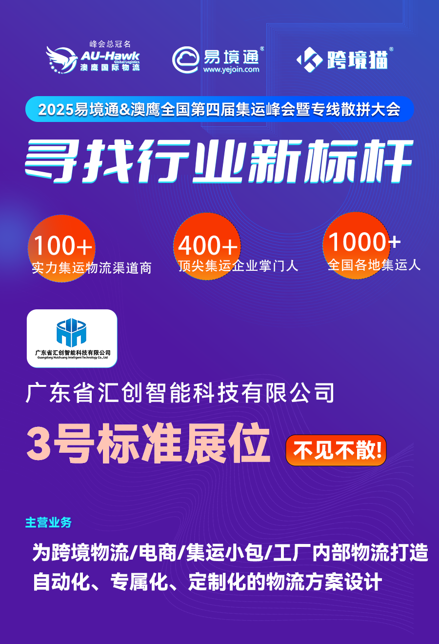 集運(yùn)人們,2025年度狂歡時(shí)刻已經(jīng)來臨!匯創(chuàng)智能已在3號(hào)標(biāo)準(zhǔn)展位嚴(yán)陣以待。這是一場不容錯(cuò)過的年度聚會(huì),是集運(yùn)人交流合作、拓展人脈、共商發(fā)展的絕佳契機(jī)。2月20日,深圳,見證我們的相聚,見證集運(yùn)行業(yè)的蓬勃新篇!讓我們攜手并肩,在這場集運(yùn)盛宴中,創(chuàng)造無限可能!