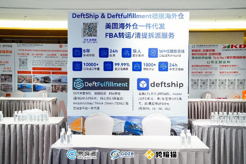 展會現(xiàn)場人頭攢動,德服海外倉的展位成為焦點之一。德服海外倉專注于美國市場,其展示的美國海外倉清提拆派一站式物流解決方案,涵蓋一件代發(fā)、FBA 中轉、退運換標等全鏈條服務,結合自營車隊以及與FedEx、UPS等快遞資源的深度合作,不斷為賣家?guī)砀焖佟⒏鼉?yōu)質的物流體驗。