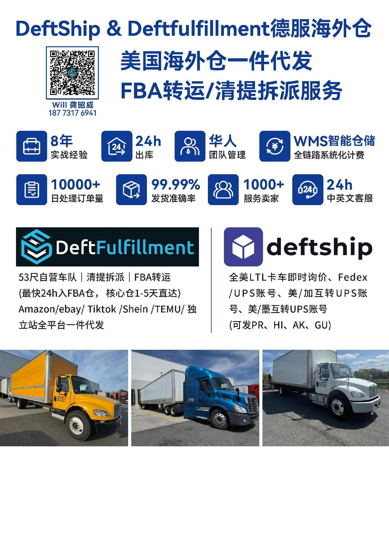德服海外倉專注于中美跨境物流,擁有8年的實戰(zhàn)經驗,在美國加州和新澤西都設立自營海外倉。其主營業(yè)務包括中大件一件代發(fā)、海外倉儲、FBA轉運、清提拆派及其他增值服務,為客戶提供專業(yè)的電商派送服務,涵蓋Amazon、eBay、Temu、TikTok和沃爾瑪?shù)绕脚_。